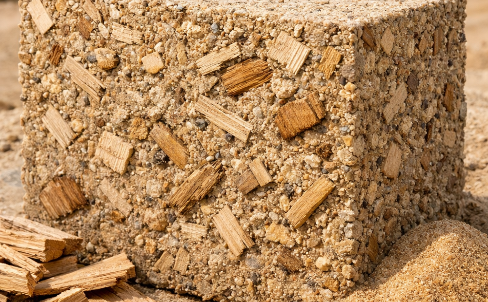 Novo concreto sustentável feito com restos de madeira e areia do deserto