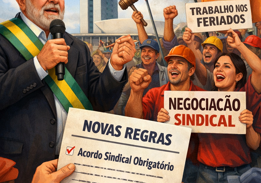 O trabalho em feriados passa a depender de negociação coletiva, com fortalecimento do papel sindical.