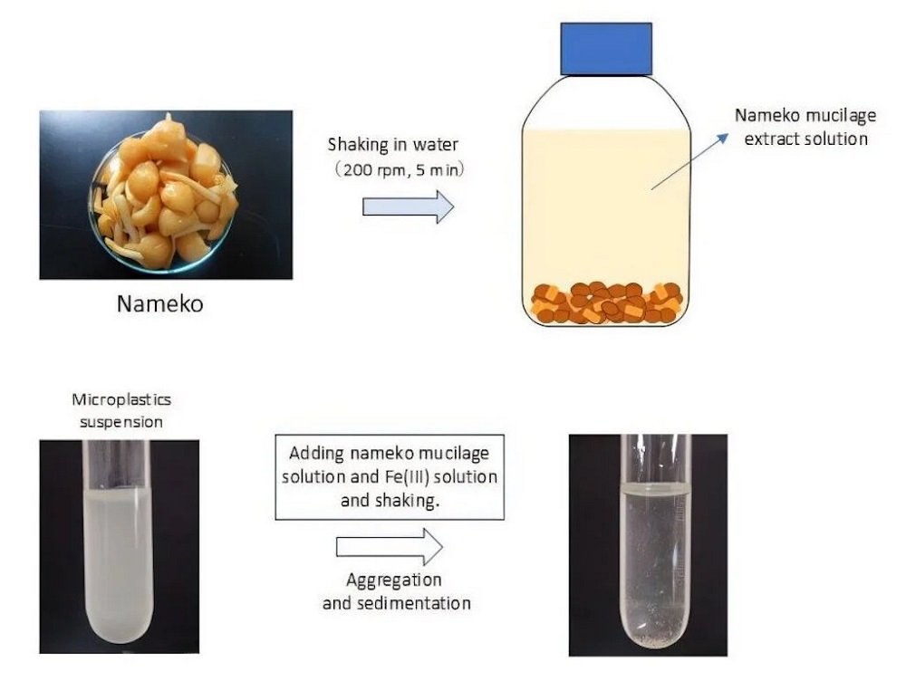 O estudo, publicado na revista Chemosphere, analisou o uso da mucilagem extraída do cogumelo comestível nameko (Pholiota nameko) para capturar microplásticos presentes na água. O cogumelo nameko é amplamente consumido no Japão e possui uma superfície naturalmente viscosa. Essa característica vem de sua secreção rica em polissacarídeos (chamada de mucilagem), especialmente pectina: um composto natural com alta capacidade de ligação a partículas. Segundo os pesquisadores, essa propriedade pode ser explorada para aplicações ambientais sustentáveis.