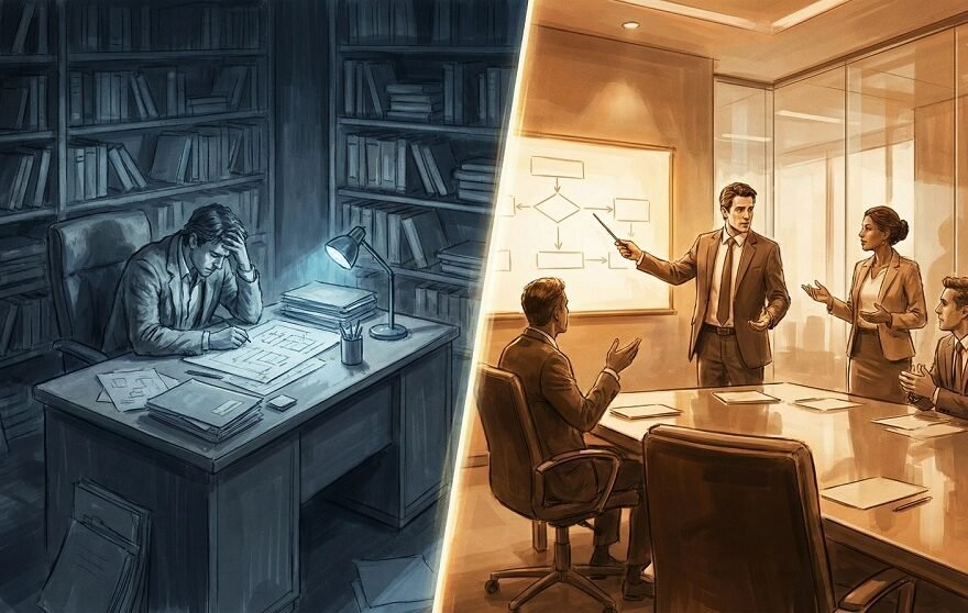 Existe um fetiche corporativo em torno do profissional que pensa rápido. Aquele líder que, sob pressão extrema, tira um coelho da cartola e salva o projeto. Nós aplaudimos o improviso e celebramos a genialidade instantânea como se fosse um dom mágico. Mas há um problema nessa narrativa que gostamos de contar: ela não é verdadeira. […]