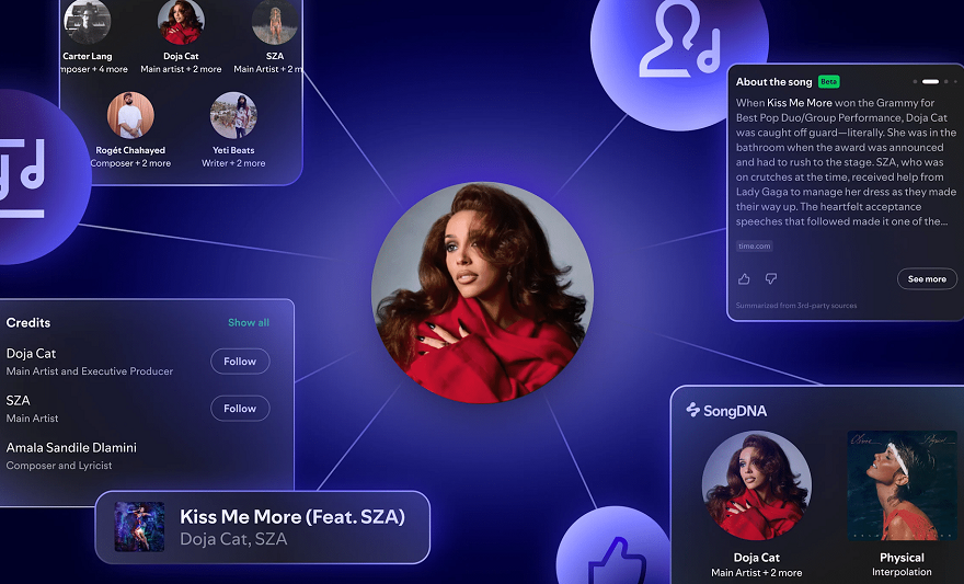 Novo “About the Song” disponibiliza informações sobre inspirações e bastidores das faixas para assinantes Premium O Spotify implementou um novo recurso chamado “About the Song” (Sobre a Música), que permite aos usuários conhecerem histórias e contextos das faixas que escutam. A novidade está disponível em versão beta para assinantes Premium em dispositivos iOS