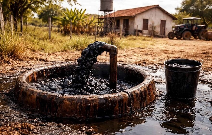 Sidrônio Moreira decidiu perfurar poços em busca de água para consumo e abastecimento dos animais quando encontrou o que parece ser petróleo Por Flavia Correia Pesquisadores do Instituto Federal do Ceará (IFCE) investigam uma possível descoberta de petróleo no interior do estado. O caso ocorre no município de Tabuleiro do Norte, onde um agricultor encontrou